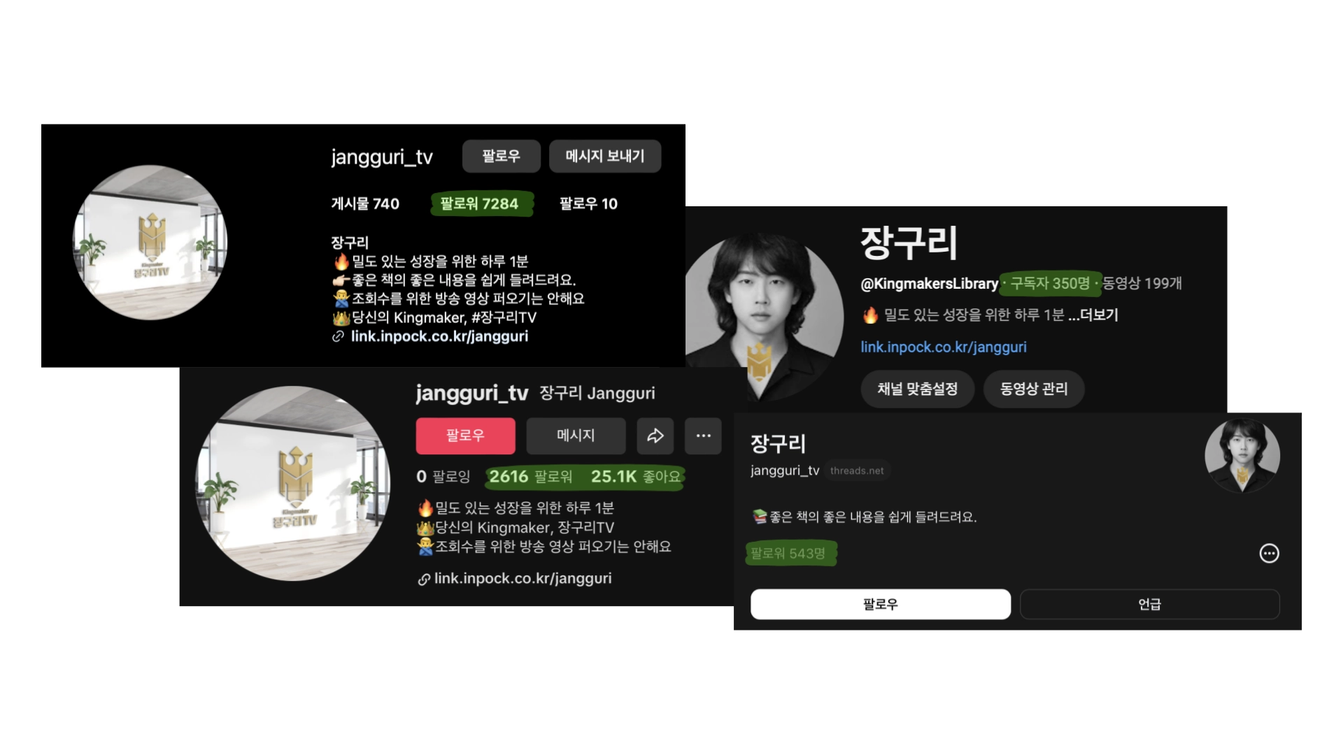 모든 채널을 통합하여 1만 팔로워를 달성했습니다.