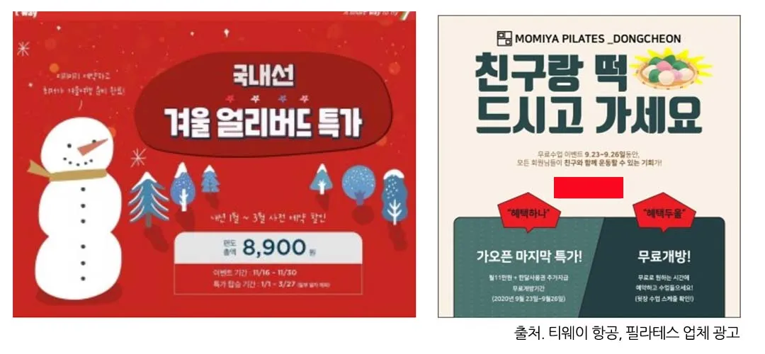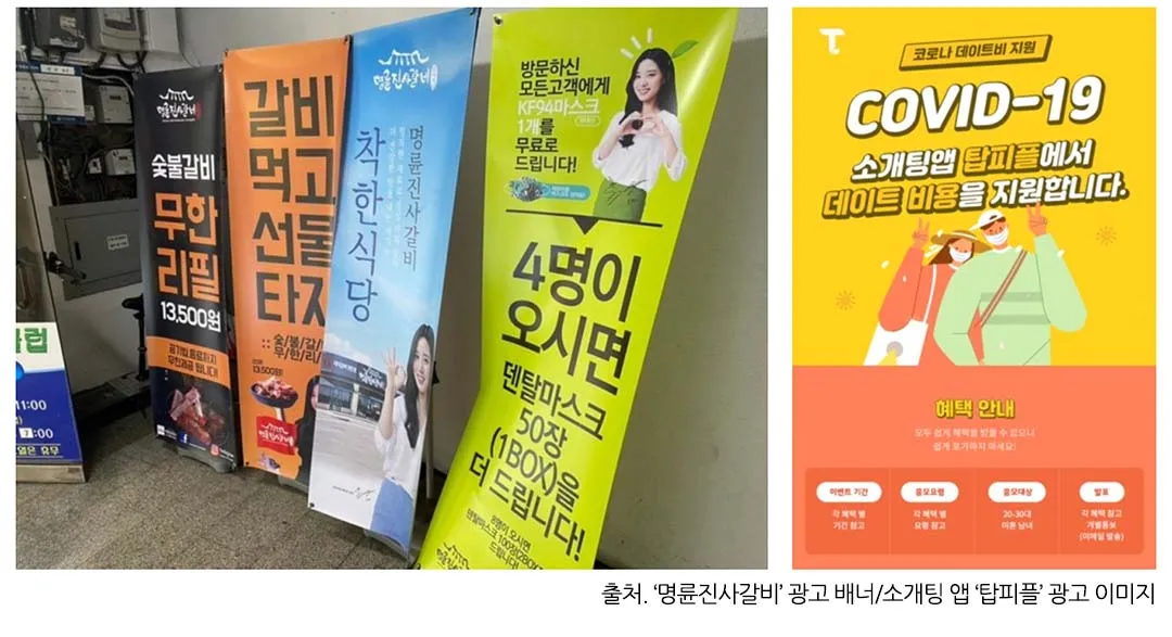 예를 들어 코로나가 한창 이슈일 때 문밖만 나서도 다음 프로모션이 눈에 띄었던 것처럼요.