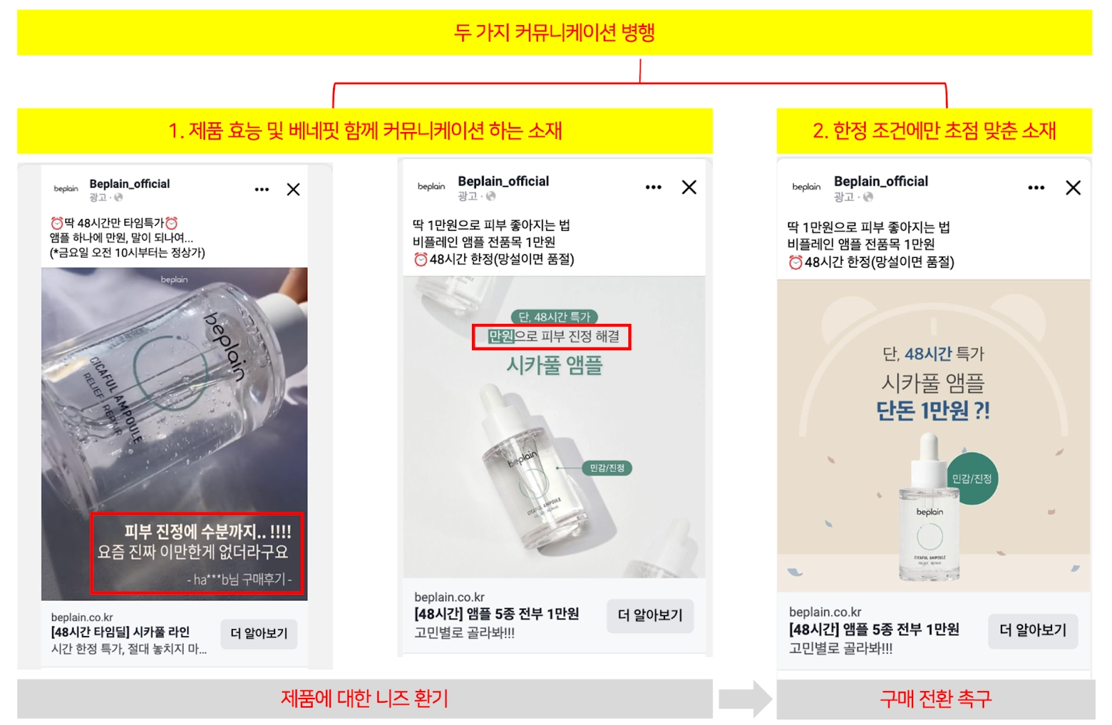 이럴 경우 광고 반응이 높더라도 브랜드에 부정적 인식이 쌓이고 이탈되므로 랜딩 페이지와 광고 메시지 간 연관성을 일치시켜 운영하는 것이 중요합니다.