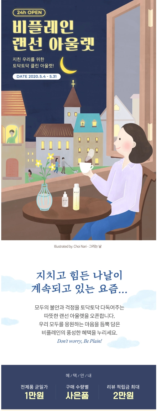 즉, '코로나로 지치고 힘든 요즘, 비플레인이 준비한 랜선 아웃렛'으로 프로모션 스토리를 탄탄하게 기획하고,