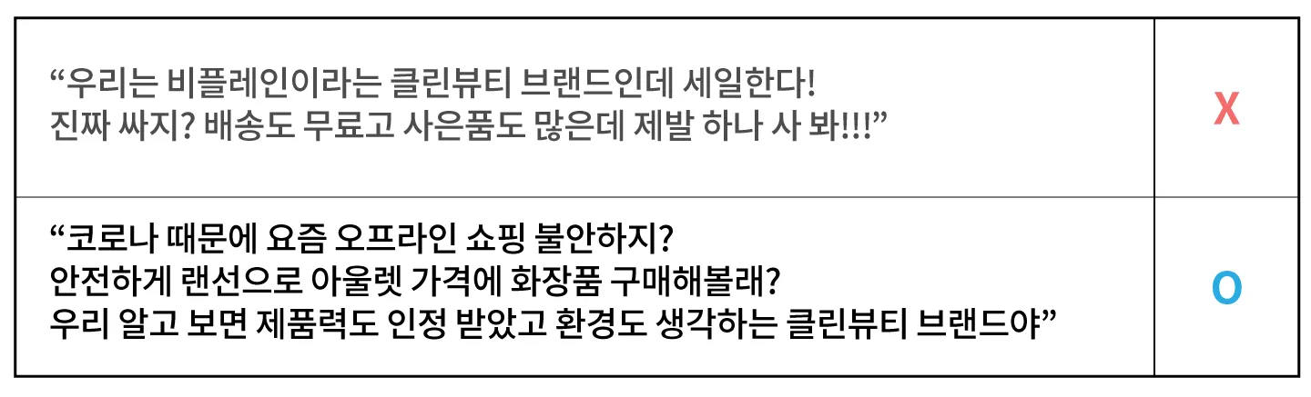 그렇다면 비플레인은 평소에도 동일한 할인율을 제공했던 적이 있었음에도 불구하고 왜 '랜선 아웃렛'만 주목을 끌 수 있었을까요?
