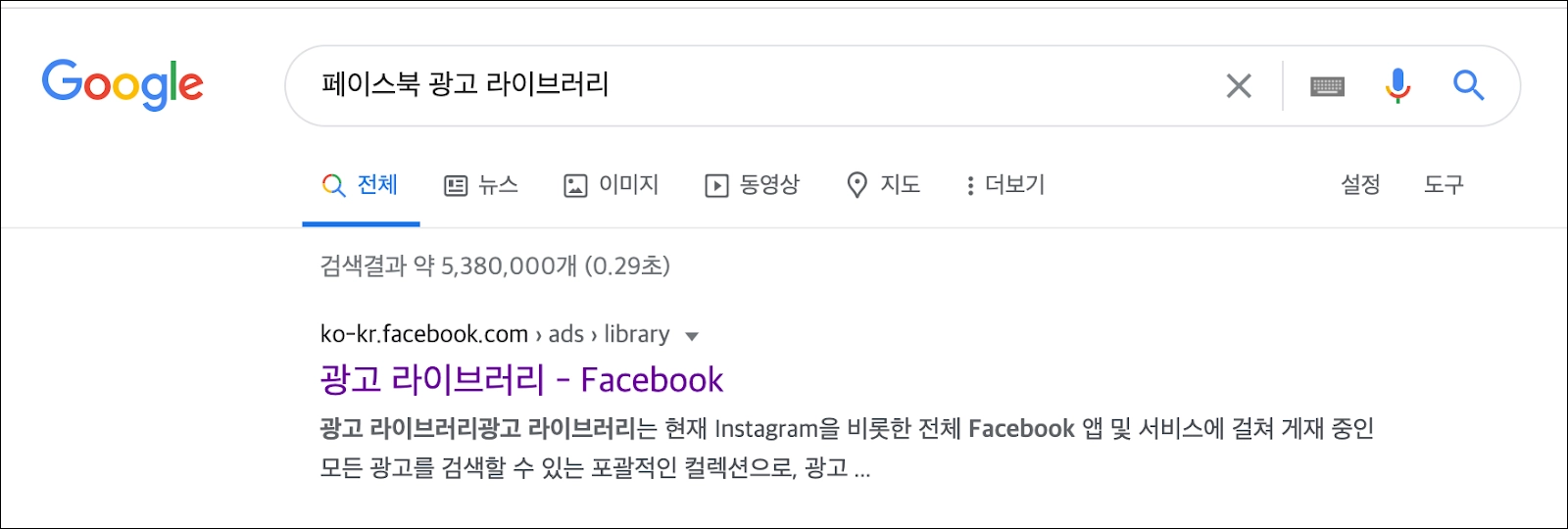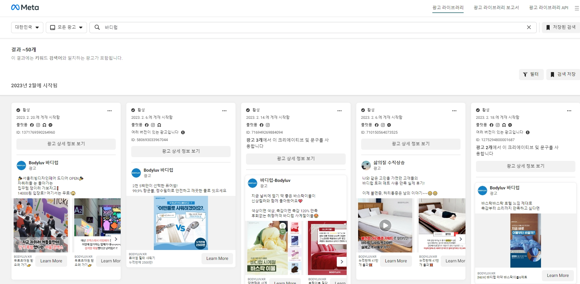 광고 라이브러리는 실제로 다른 회사들이 현재 집행하고 있는 광고 소재를 보여준다.