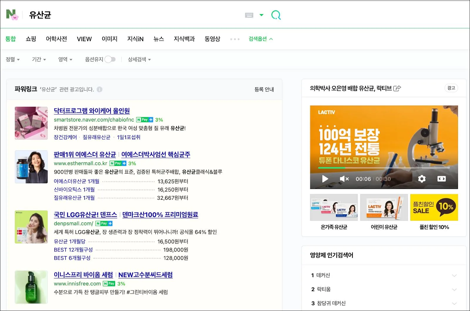 예를 들어 '유산균' 제품의 콘텐츠를 기획한다고 가정하자. 그러면 일단 네이버에서 '유산균'을 검색한다.