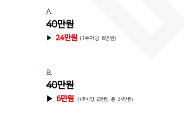 B의 경우가 더 저렴하게 보인다. 많은 서비스들은 소비자들의 가격 부담을 덜어주기 위해 할부금으로 가격을 표시하고 있다.