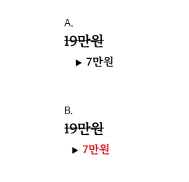 위의 두 가지 가격 표시 중 B 방식이 '할인'이라는 느낌을 주고 눈길이 간다.