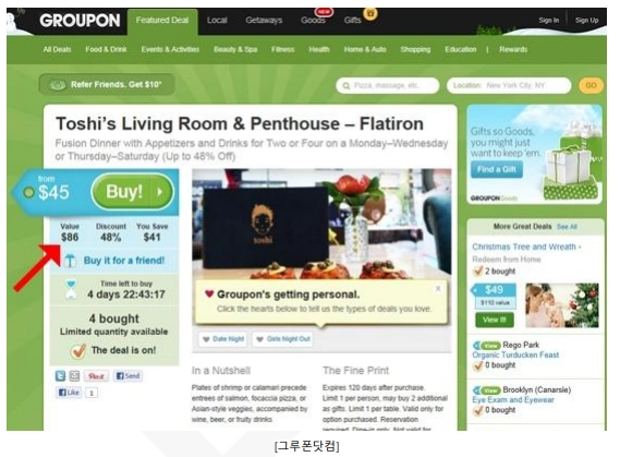 물론, 적자 이미지까진 아니더라도 빨간색은 좀 더 합리적인 가격, 할인된 가격이라는 착각을 불러일으킨다. 인간은 그러한 착각 속에서 많은 비합리적 결정을 하기 때문에, 이를 가격 표시에도 적절하게 녹여야 한다.