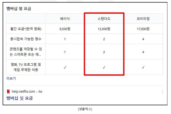 구독 서비스의 요금제도 비슷한 가격 제시 방식을 가지고 있다. 넷플릭스의 가격 전략도 고객들을 자연스럽게 스탠다드 상품으로 유인하는 것이다.