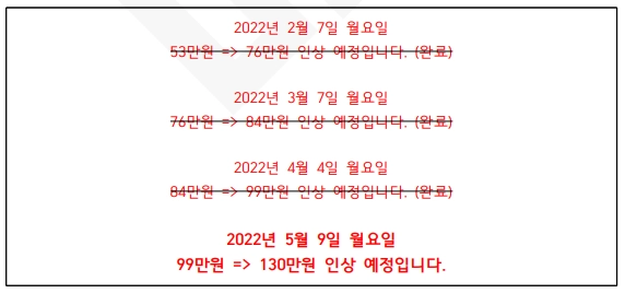 또한 '단순히 가격이 인상될 것입니다'라고 제시하는 것이 아닌 '이 날짜에 가격을 인상할 것입니다'처럼 구체적인 날짜를 알려주는 것은 판매의 치트키이다. 예를 들면 아래와 같다.