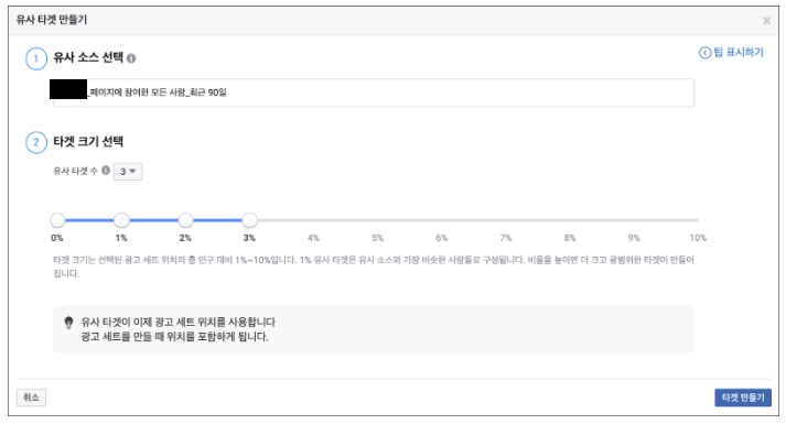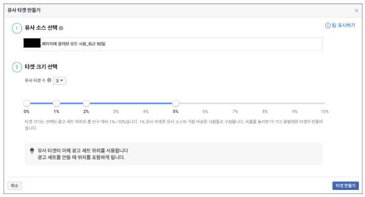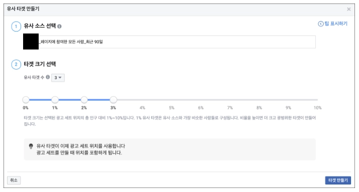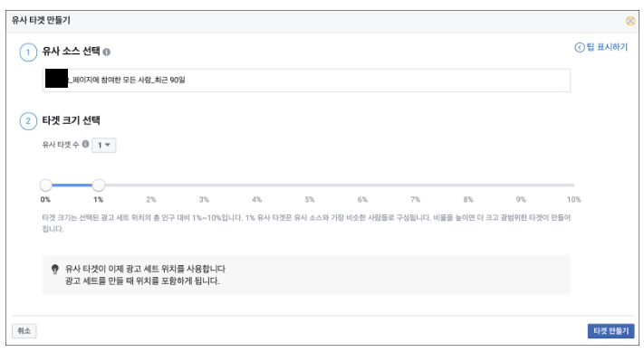 유사 타겟 만들기는 맞춤 타겟 만들기에 비해 간단하다. 총 2개의 단계가 있다.