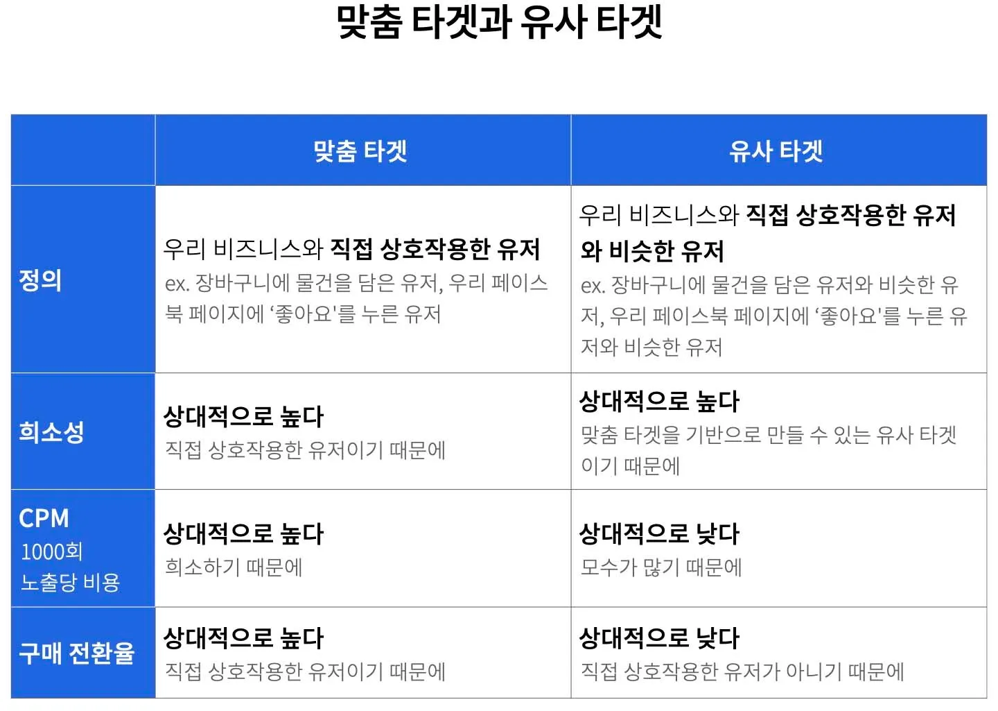 '맞춤 타겟'과 '유사 타겟'의 차이는?