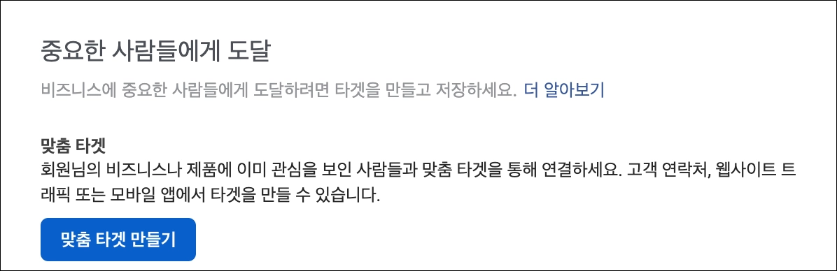 여기서 우리가 중요하게 보아야 할 것은 맞춤 타겟과 유사 타겟.