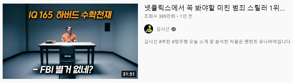 '제목 포커싱 전략'은 제목에 최대한 집중하도록 만드는 전략입니다. 이 전략은 썸네일에 텍스트를 아예 쓰지 않거나 아주 짤막한 단어나 대사 1개 정도만 적습니다. 제목을 읽지 않고는 궁금해서 못 배기게끔, 호기심을 불러일으키는 사진만 덩그러니 넣죠. 그리고 제목에 강렬한 카피라이팅을 적용해 클릭을 유도합니다.
